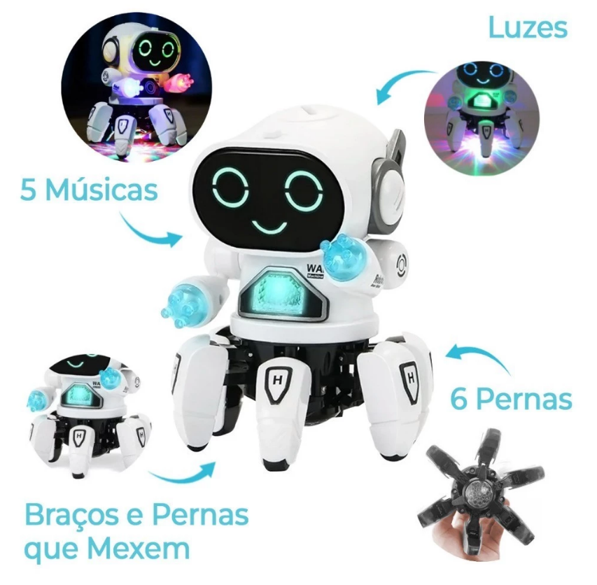 O Robô Dançante 6 Pernas com Luz, Som e Movimento
